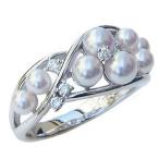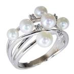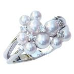 パール リング カジュアル 普段使い プラチナ 真珠リング 指輪 ベビーパール 6コ付リング V字リング アコヤ あこや ダイヤモンド 送料無料 レディース pu