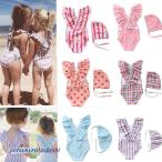 日本倉庫から出荷可能 送料無料 水着 女の子 ワンピース 子ども オールインワン フリル肩 子供 水着 ベビー水着 女児 子供用 こども 女子 みずぎ かわいい 赤ちゃん 80 90 100 110 120 130 140cm キャップ付き チェック SNS