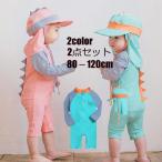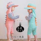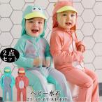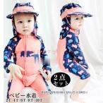 ベビー水着 キッズ 水着 男の子 女の子 キャップ付き ロンパース水着 2点セット 長袖 ラッシュガード UVカット 子供用 スイムウェア 海水浴 ビーチ プール
