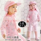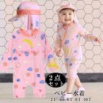 ベビー水着 女の子 ロンパース 赤ちゃん キッズ 長袖 ラッシュガード 紫外線対策 UVカット キャップ付き2点セット オールインワン スイムウェア 水遊び 海水浴