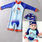 ベビー 水着 男の子 キッズ 子供 キャップ付き 長袖 オールインワン ロンパース水着 UV対策 スイミング スクール用 幼稚園 海水浴 練習用 プール スイムウェア