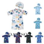 ベビー水着 男の子 キッズ 水着 夏 海 プール ビーチ 子供 ジュニア 赤ちゃん 連体水着 かわいい みずぎ オールインワン 男児 つなぎ水着 水泳帽付き キッズ水着