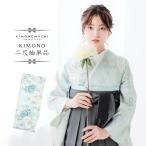 袴 セット 女性 4点セット「二尺袖:牡丹に菊 ベビーブルー+袴:黒色ぼかし+袴下帯:ブラック 麻の葉+襦袢 」 二尺袖着物セット 二尺着物 (メール便不可)