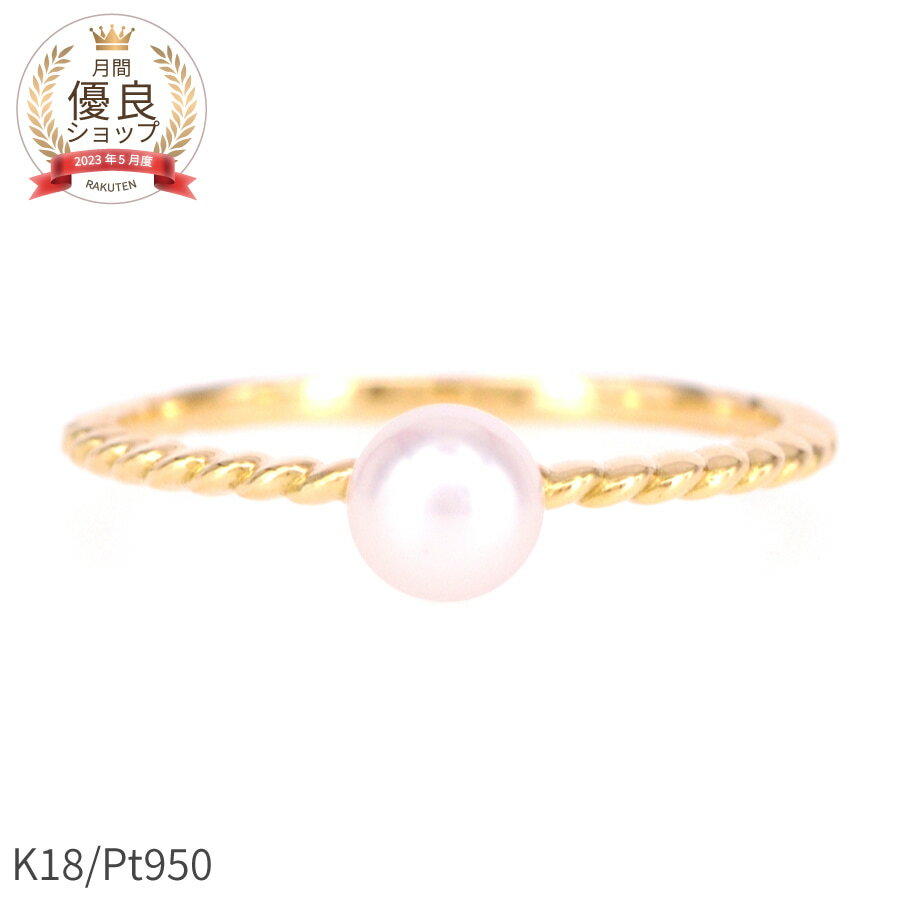 【10%OFFクーポン】 アコヤ真珠 リング 18金 イエローゴールド プラチナ950 k18 ピンクゴールド 18k 4.5mm-5mm ベビーパール パール あこや 指輪 6月 誕生石 一粒 ねじれ ツイスト 冬ギフト ジュエリー 日本製 ギフト プレゼント 細め