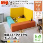 (タイムセール中) キッズプレイマット 安全安心キッズコーナー 5点セット フロアマット2枚+スツール3枚 150×150