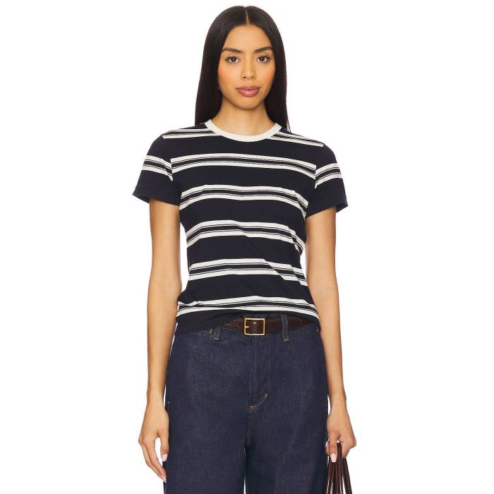 フレーム Frame 【 The Baby Tee Women Navy Multi 】 Tシャツ レディースファッション トップス Tシャツ カットソー レディース 紺色 ネイビー