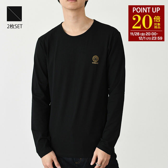 【P20倍対象商品】VERSACE ヴェルサーチ ヴェルサーチェ Tシャツ クルーネック ロングTシャツ 2枚セット AU10197 1A10011 ブラック 黒 ベルサーチ カジュアル メンズ ロゴT ロンT ミニロゴ