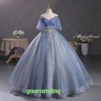カラードレス 編み上げ ブルー ベルスリーブ ロングドレス 結婚式 二次会 発表会 演奏会 ウェディングドレス ウエディングドレス 花嫁 前撮り プリンセスドレス