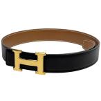 エルメス HERMES コンスタンス リバーシブル Hベルト □A刻印 ベルト ボックスカーフ クシュベル ブラック ゴールド レディース 中古