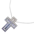 ダミアーニ ベルエポック M クロスネックレス ペンダント チェーン レインボー サファイア ピンクゴールド×マルチカラー 750PG 11.9g