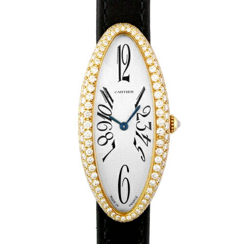 【新品純正ベルト】カルティエ CARTIER ベニュワール アロンジェ WB512031 YG×革 47mm×21mm シルバー文字盤 ベゼル・ケースダイヤ【送料無料】【中古】【レディース】【腕時計】