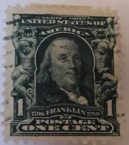 ベンジャミン・フランクリン グリーン 1 セント米国切手(希少)