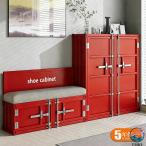 シューズボックス スチール製 ベンチ一体型 シューズキャビネット コンテナ風 インダストリアルデザイン 玄関収納 収納ベンチ 靴収納 レッド 幅80cm