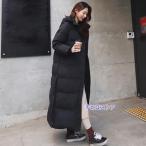超ロング ダウンコート ベンチコート 大きいサイズ ダウンジャケット フード付 ポケット付 90%ダウン ブラック 黒 厚手 冬服 レディース