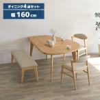 変形型 ダイニングテーブルセット 4人掛け 幅160cm ダイニングチェア 肘付き 2脚セット ダイニングベンチ 北欧 カフェ風