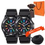 ラッピング済 ギフトセット ペアウォッチ 腕時計 手表 Q&Q シチズン 10気圧防水 手提げ紙袋つき 時計ケース付 色違い 誕生日 クリスマス プレゼント 爆買