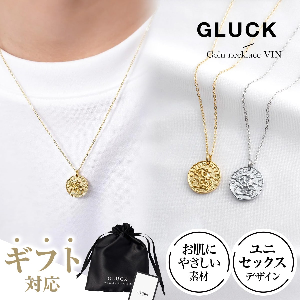 11/20スタート★ブラックフライデー★W特典5%OFFクーポン コインネックレス アクセサリー レディース メンズ 錆び 金属アレルギー ゴールド シルバー つけっぱなし ペアネックレス クリスマス ギフト チェーン40cm GLUCK