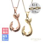 ハワイアンジュエリー フィッシュフック ペアネックレス 刻印無料 誕生石入れ可 2個セット K14ゴールド ハワジュ