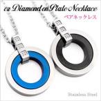 ペアネックレス ステンレス リング型 2連 クリスタル ネックレス ペア アクセサリー ローズゴールド 黒 サージカルステンレス ペンダント メンズ レディース