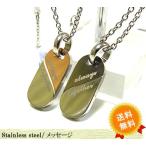 送料無料 ペアネックレス ステンレス プレート メッセージ ブルー ピンクゴールド 刻印可能 年度末 sale