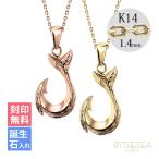 ハワイアンジュエリー フィッシュフック ペアネックレス 刻印無料 誕生石入れ可 2個セット K14ゴールド ハワジュ