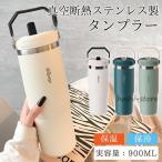 タンブラー 水筒 ストロー付き 900ml 蓋付き 大容量 真空断熱 保温 保冷 持ち運び マグボトル 直飲み 二重構造 ステンレス コーヒーカップ