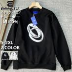 【20%off】トレーナー 長袖 EU製 Emmauela ミラノ発 綿100% 保温 リング柄 シンプル ゆったり アメカジ トップス プルオーバー 長袖Tシャツ ロンT カップル