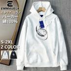 【20%off】パーカー 長袖 EU製 Emmauela ミラノ発 綿100% ソフト 暖かい リング柄 シンプル ゆったり カットソー スウェット トップス プルオーバー フーディー