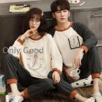 カップルパジャマ ペアパジャマ 秋冬 綿100% パジャマ 部屋着 寝巻き ルームウェア 上下セット 長袖 レディース/メンズパジャマ ペアリング ギフト 卒業式