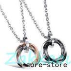 ペアネックレス リング ステンレス ピンクゴールド ブラック ダイヤ 男女兼用 誕生日 プレゼント