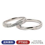 ペアリング プラチナリング pt900 指輪 2本セット ウェーブライン&天然ダイヤ付 1〜23号 名入れ 刻印無料 結婚指輪 マリッジリング