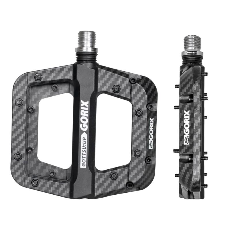 GORIX(ゴリックス)自転車ペダル フラットペダル カーボン柄 強化ナイロン素材 ワイドな踏み面 軽量モデル(GX-H55 カーボン柄ブラック) 滑り止め ピン付き かっこいい おしゃれ スパイク 自転車