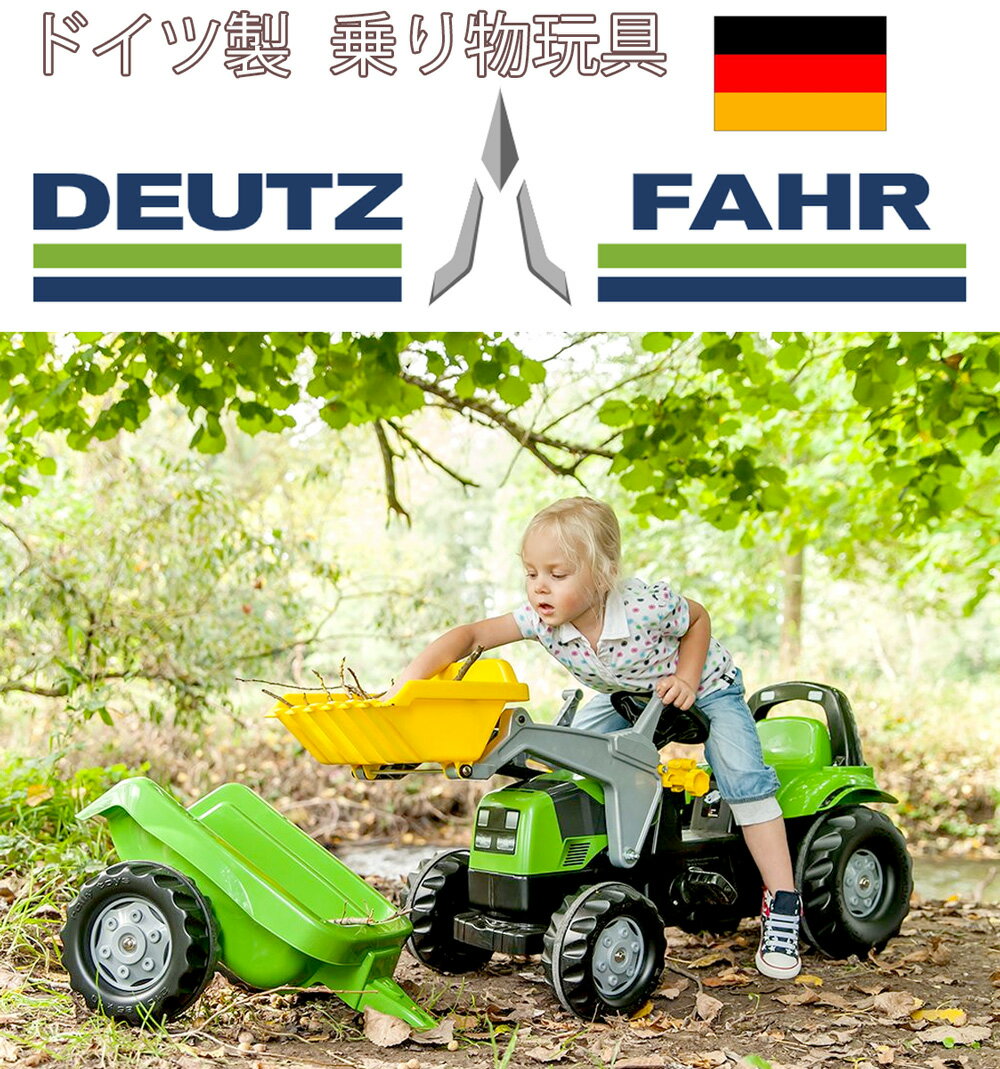 ドイツ製子供用乗用玩具 おもちゃバケットを動かせて運転モデルペダルカートレーラーやバケットは取り外し可能ロリートイズ デューツキッズトラクター 子供用知育玩具ダンプカー グリーン貨車運転体験 3歳 4歳 5歳 rolly toys track