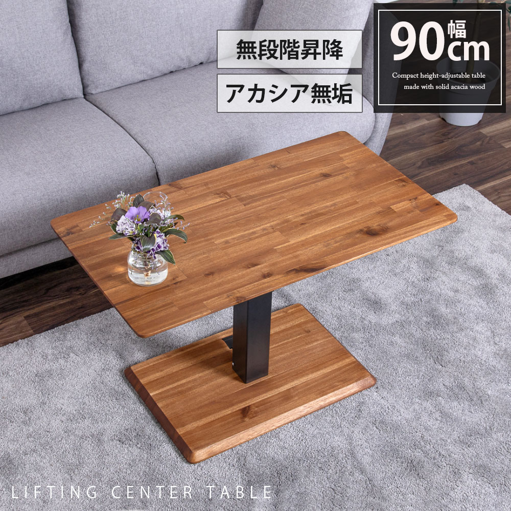 【先着15%OFFクーポン!14(土)~】 昇降テーブル 幅90cm アカシア 天然木 無段階 高さ調節 ガス圧式 ペダル 昇降式テーブル ガス圧昇降 昇降式 テーブル ソファーテーブル リビングテーブル 90cm 低め 小さめ ロータイプ リフティング リフティングテーブル