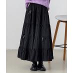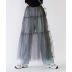 スカート 「ロング丈/透け防止のペチコート付き」バレエコアルックリボンティアードスカート レディース