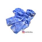 ふるさと納税 墨流し染 シルク ロングストール 青羽柄 大判 / ストール 一点物 絹 サテン織 染美堂 奈良県 葛城市【snbd003】 奈良県葛城市