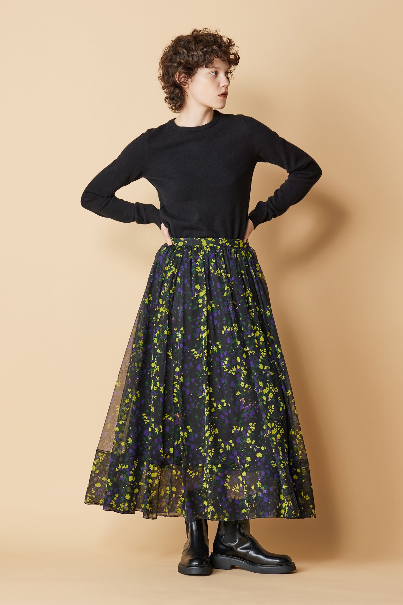 KANEKO ISAO/カネコイサオ◇黒総ピコフリルローンワンピース&円形パッチワークスカート