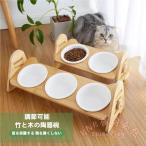 フードボウル 猫用 小型犬用 食器台 竹製 陶器 KNK(株) 高さ調節可能 傾斜 2連2皿 3皿対応 ペット食器 こぼれにくい