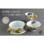 ふるさと納税 食器・グラス 皿 佐賀県 有田町 有田焼 ペットとお揃いの器 3点 セット 牡丹唐草(黄) 泰山 猫・小型犬用フードボウル 丸マグカップ 飯碗 ペット …