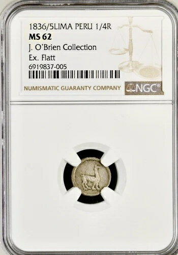 ペルー 1836/5 1/4 リアル NGC MS62 最高グレード!素晴らしいダブルペディグリー