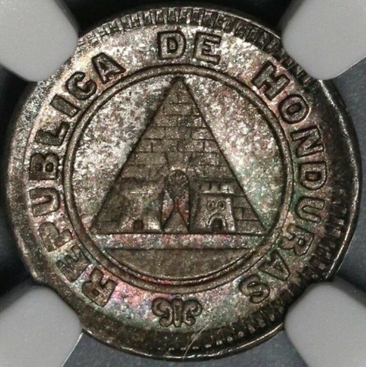 1886 NGC MS 64 ホンジュラス 5センタボ ラージピラミッド シルバー ペディグリーコイン (21030103C