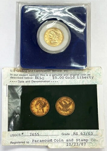 1903年 S ゴールド US $5 リバティヘッド ハーフイーグルコイン パラマウント ペディグリー ミントステート