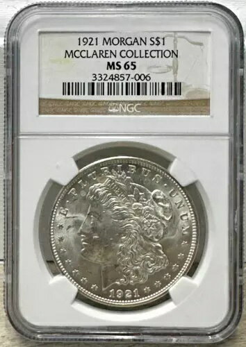 1921年 P モルガン シルバー ダラー $1 NGC MS 65、マクラーレン コレクション ペディグリー