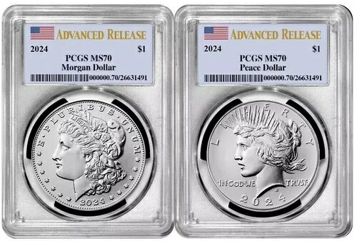 2024 モーガン&ピース ドルセット PCGS MS70 アドバンスリリース ペディグリー フラッグラベル!!!