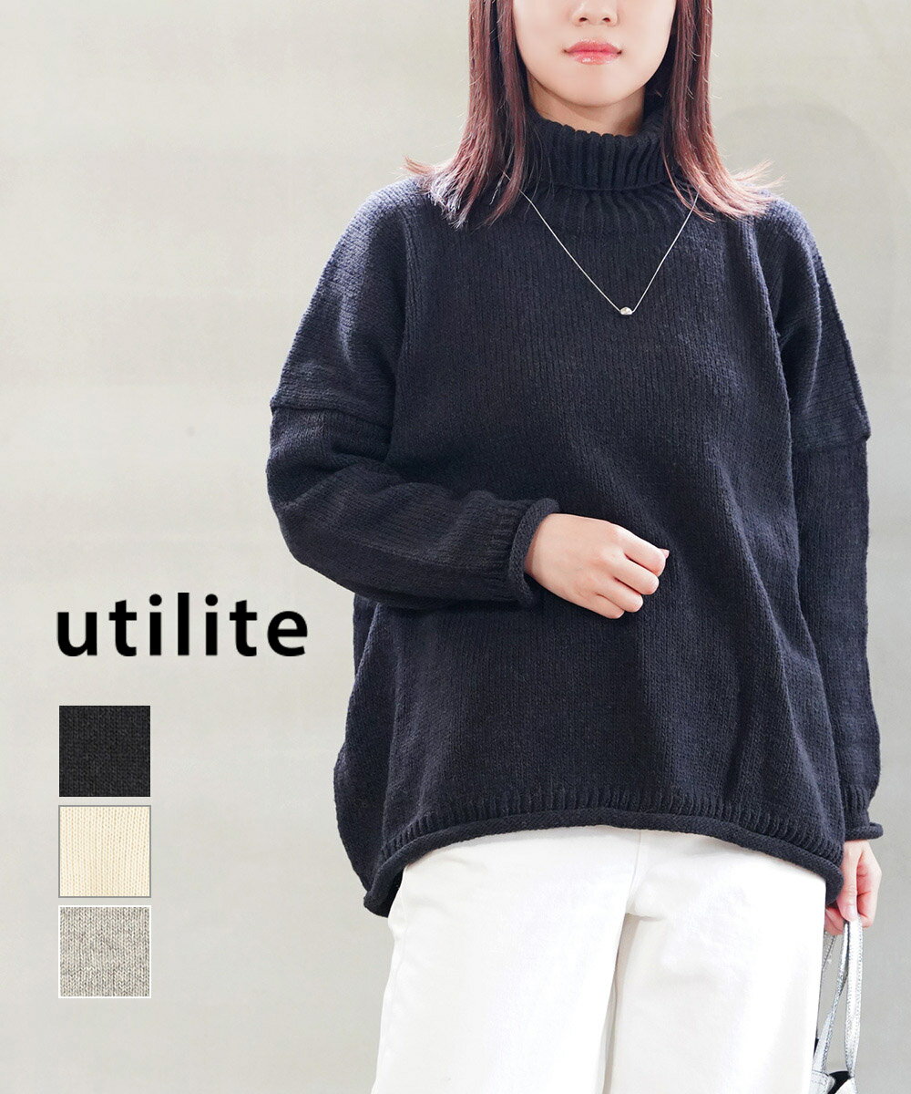 【20%OFF】【LINEクーポン有】【2025年秋冬新作】ユティリテ utilite ニット プルオーバー セーター トップス タートルネック ハイネック 長袖 ウール ペルーニット ゆったり 体型カバー かわいい・UT410AWK12-3612502(レディース)