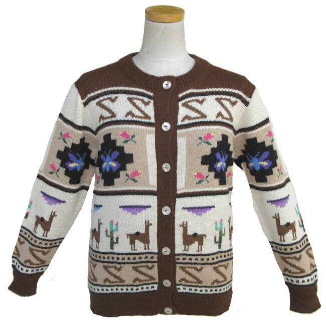 アルパカ100% カーディガン ALCA-025-2 女性 ペルー アンデス ソフト 暖かい 花柄 アルパカ柄 インカ フォルクローレ