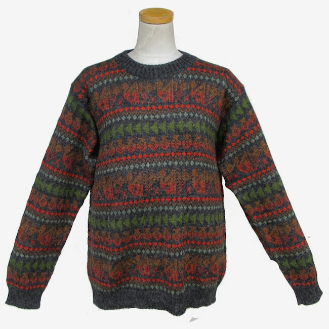 男性 アルパカ100% セーター ALC-052 丸首 ペルー ソフト 暖かい 幾何学柄 インカ アンデス フォルクローレ