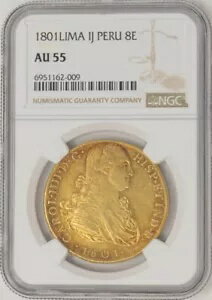 1801 リマ IJ ペルー ゴールド 8 エスクード .7615 AGW AU55 NGC 949132-2