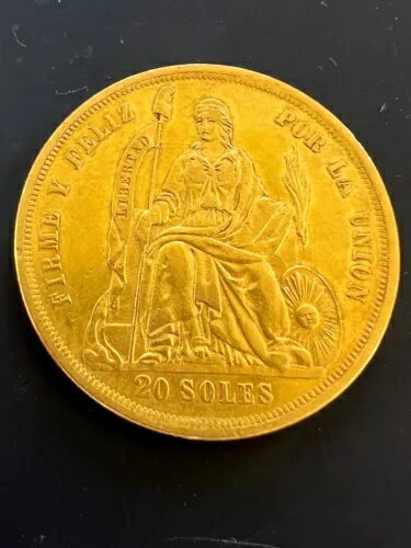 1863 ペルー 8 エスクード 20 ソール ゴールド コイン リマ ミント、32.27gr
