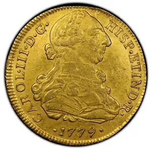 ペルー 1779-L MJ チャールズ 3 世 "LIMA MINT" ゴールド 8 エスクード PCGS AU 詳細